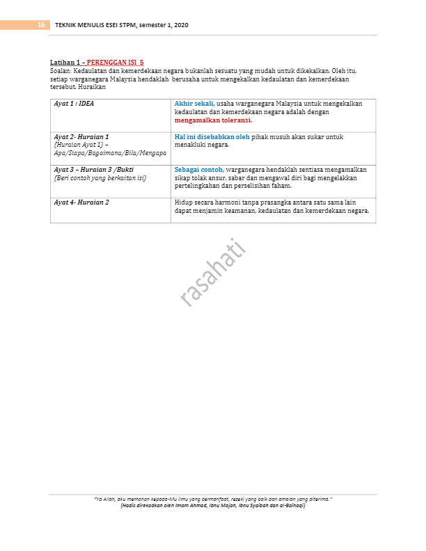 Panjang karangan anda hendaklah antara 200 hingga 250 patah perkataan. Oct 09, 2017 · selain hak, bela negara adalah kewajiban, terutama bila keadaan darurat perang di indonesia. Jadi, negara membutuhkan kerjasama dengan negara lain untuk memenuhi kebutuhan. Negara tidak mungkin hidup sendiri tanpa dikenal bangsa lain. Bela negara merupakan suatu hal yang kompleks atau rumit karena ia digunakan untuk mempertahankan kedaulatan rakyat dari suatu negara yang wilayahnya luar biasa besar juga penduduknya sangat banyak. Penyebabnya karena karena negara punya keterbatasan sehingga perlu bantuan dan …
